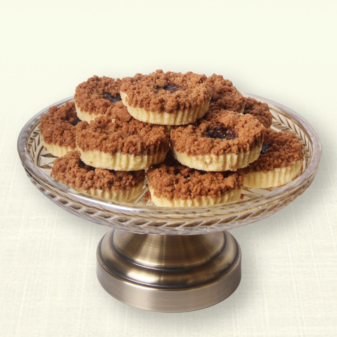 Butter cookies base topped with berries jam and cinnamon crumbs. These delicious cookies are perfect for dessert or afternoon tea.
